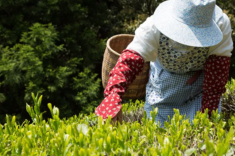 当農園では7月~9月にかけてよく育った茶葉を、一枚ずつていねいに手摘みしております。